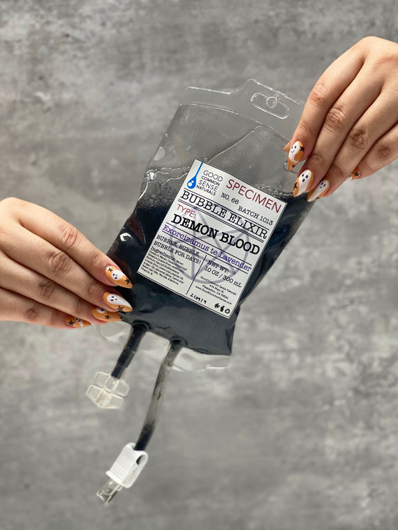 Our signature bubble bath with happily donated demon blood! Hang this life saving body wash bag in your shower and enjoy! Spooky bubbles coming to you!