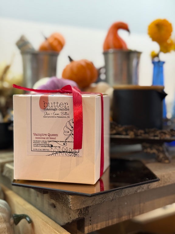Our Butter Candle Collection has gained a new ruler... Vampire Queen is making a VERY limited appearance. Made with sweet citrus & smooth neroli freshen and soothe tired bones... Waiting for their chance to awaken again.